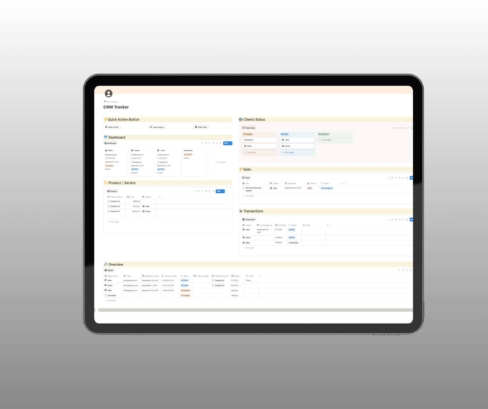 Comprehensive Client Overview: Access all critical client information, including contact details, pricing, dates, and transaction histories, in one centralized location for easy reference.