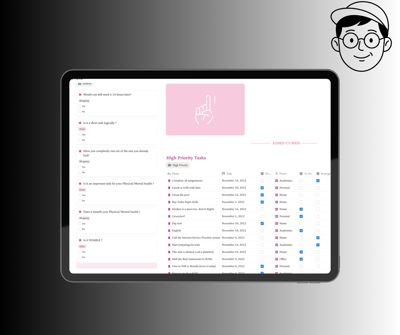 To help you stay organized, we have included 19+ specific modules. Each one is a dedicated Notion template ADHD sub-page: