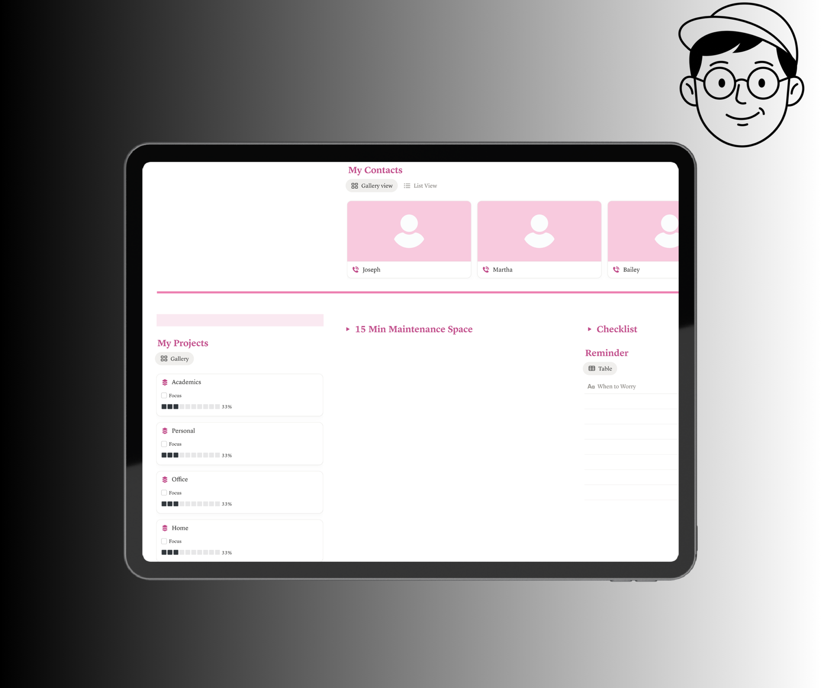 The primary goal of a Notion template ADHD is to act as an “external brain.” By offloading your “My Contacts,” “My Projects,” and “Reminders” into a centralized, aesthetic space, you free up mental RAM.